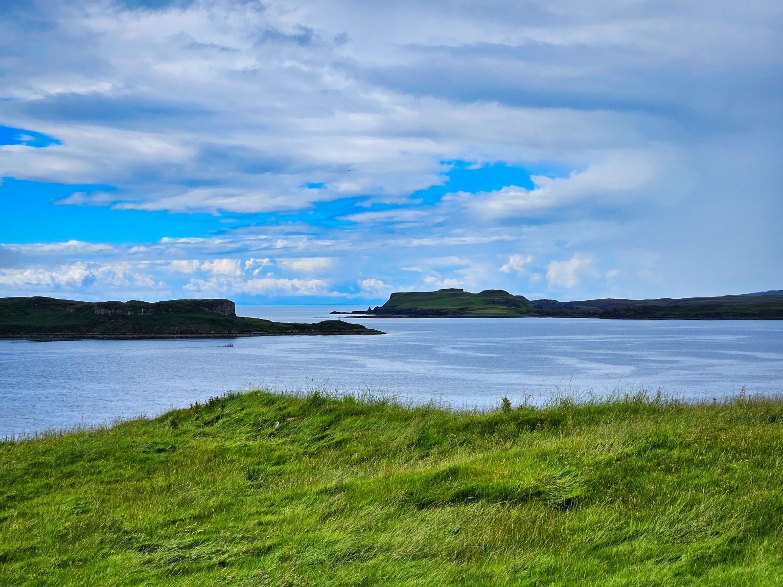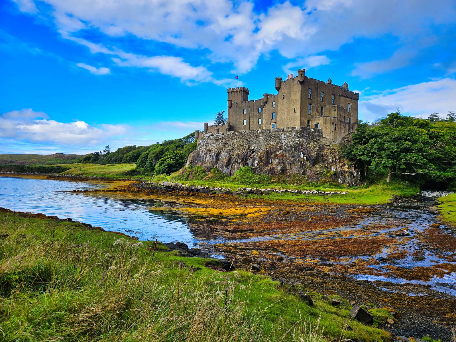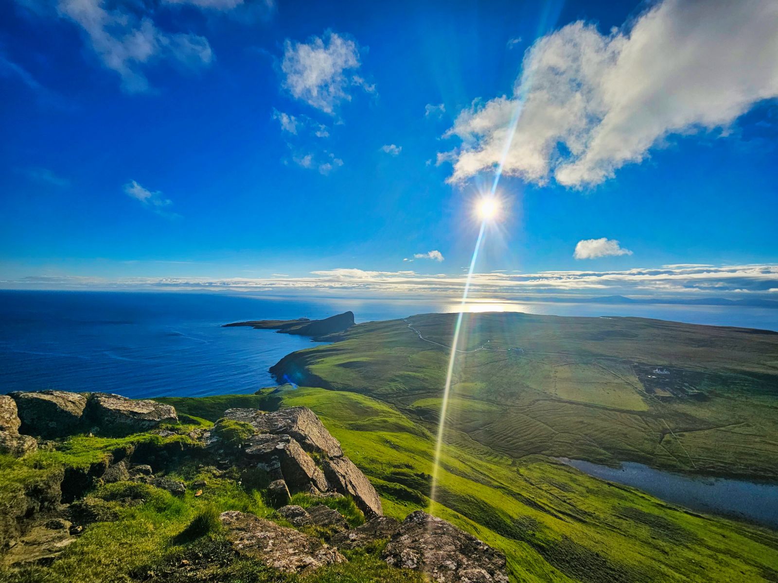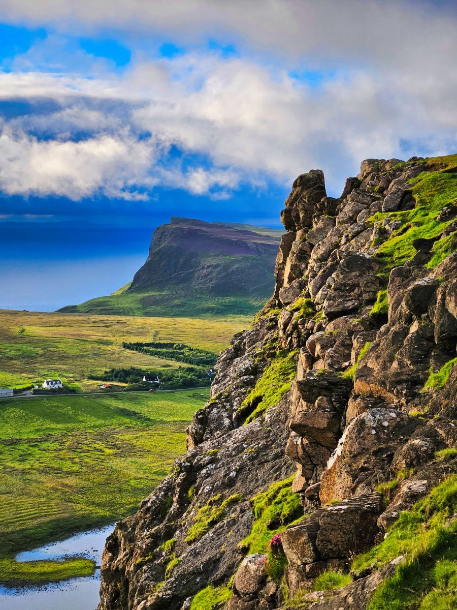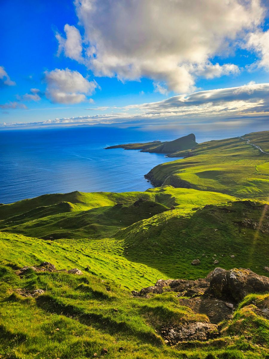 Wir besuchten die 3. Whiskey Distillery, aber die erste wo wir auch eine Tour bekamen (mind. 2 Tage vorher buchen!). Die Tour war sehr informativ. Danach ging es nach Dunvegan Castle Sitz der MacLeods. Die Lage ist einmalig! Der Garten drumherum auch riesig und schön. Danach planten wir eine Tour zu einem Leuchtturm, jedoch staute sich zum Glück alles auf der Single Track Road, sodass wir ca. 1km vor dem Leuchtturm stehenblieben. Der Platz war genial und wir entscheiden uns gleich hier zu übernachten von dem Berg links von uns, den wir noch bestiegen, sahen wir dann auch den Leuchtturm, besser als vom offiziellen Viewpoint aus.