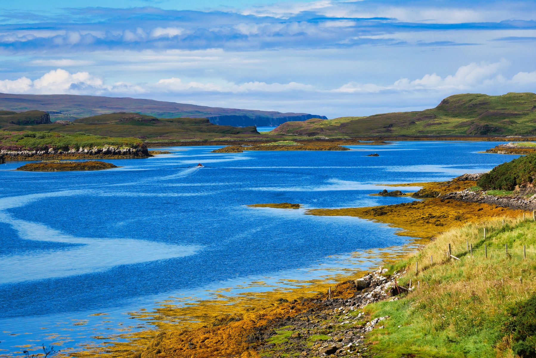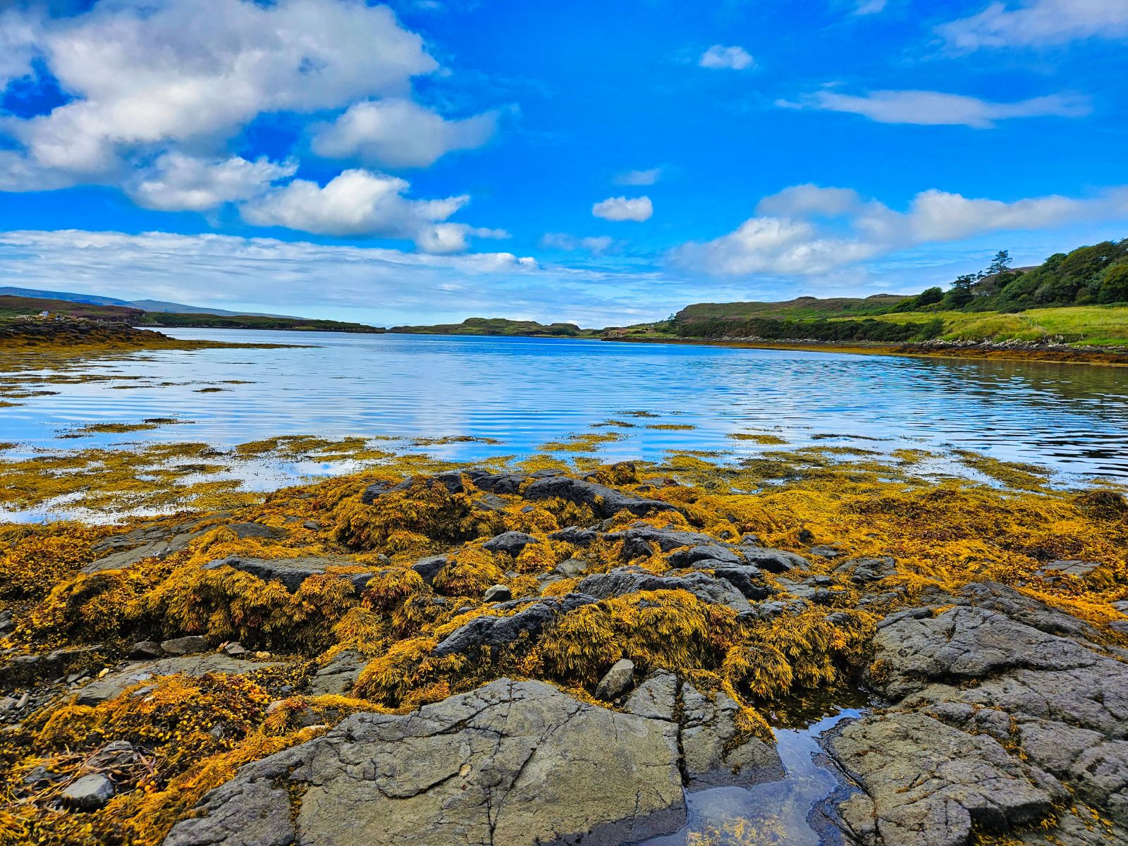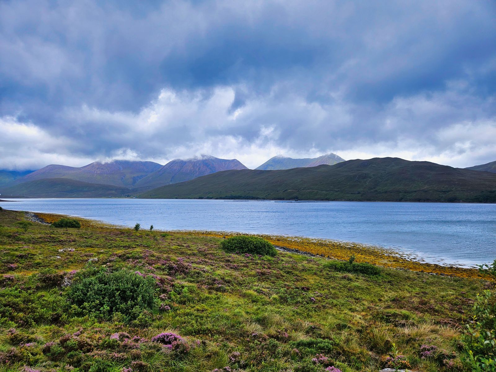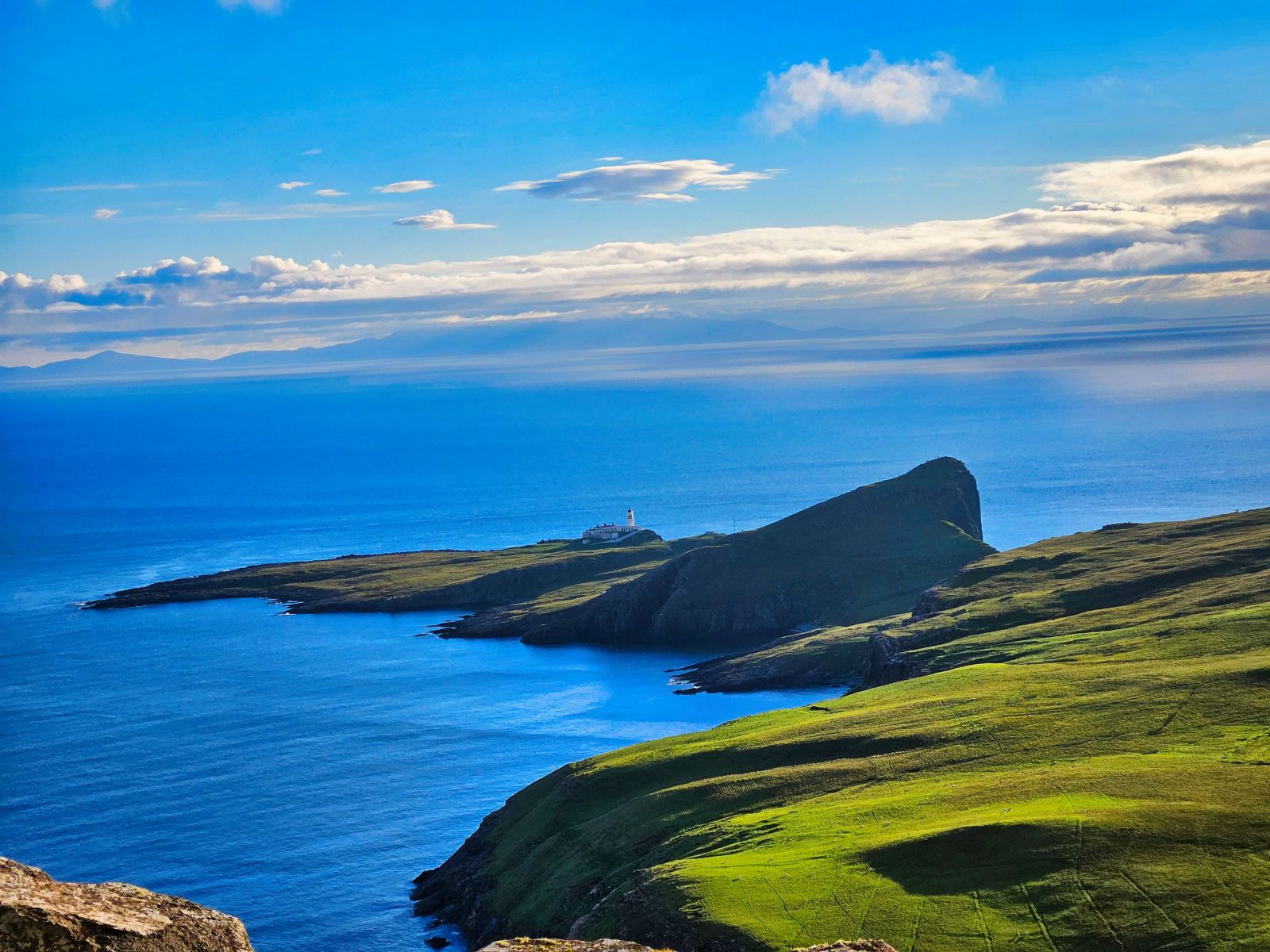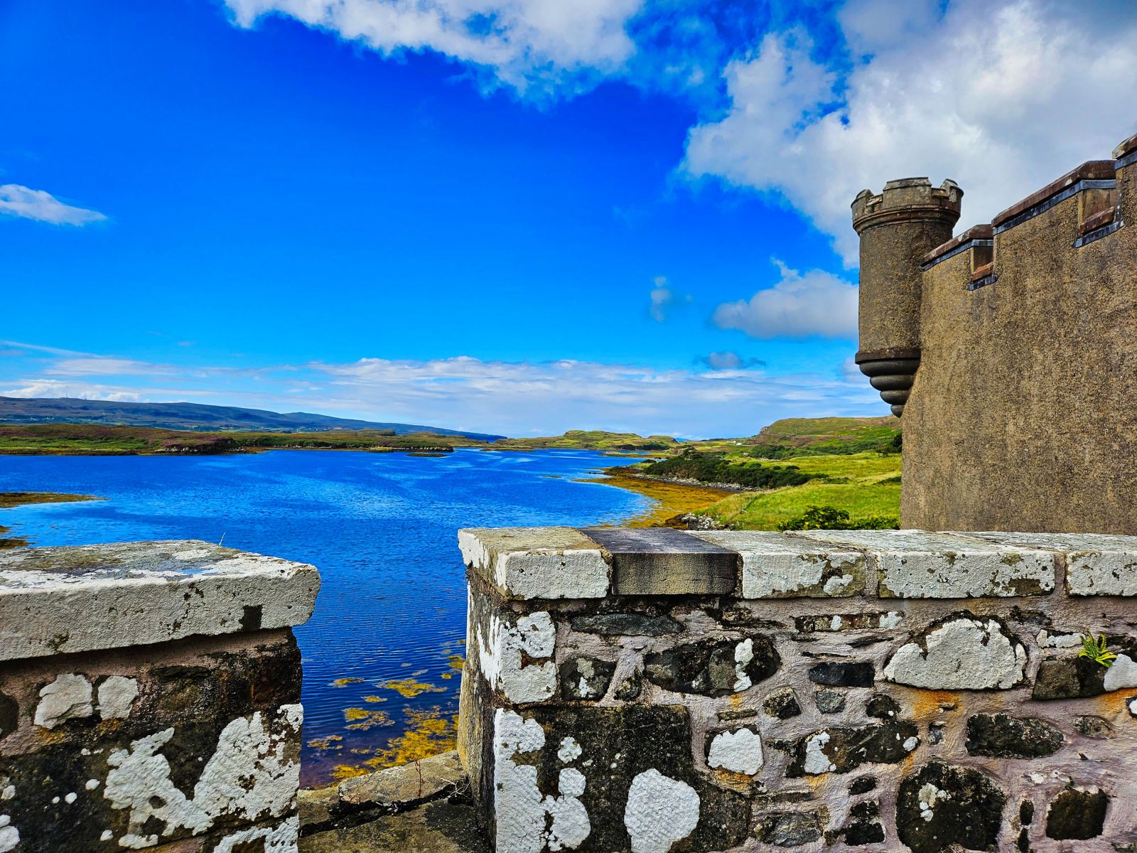 Wir besuchten die 3. Whiskey Distillery, aber die erste wo wir auch eine Tour bekamen (mind. 2 Tage vorher buchen!). Die Tour war sehr informativ. Danach ging es nach Dunvegan Castle Sitz der MacLeods. Die Lage ist einmalig! Der Garten drumherum auch riesig und schön. Danach planten wir eine Tour zu einem Leuchtturm, jedoch staute sich zum Glück alles auf der Single Track Road, sodass wir ca. 1km vor dem Leuchtturm stehenblieben. Der Platz war genial und wir entscheiden uns gleich hier zu übernachten von dem Berg links von uns, den wir noch bestiegen, sahen wir dann auch den Leuchtturm, besser als vom offiziellen Viewpoint aus.